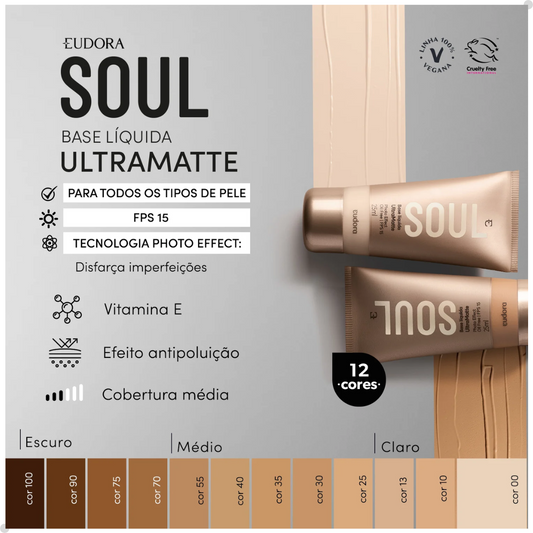 BASE LÍQUIDA SOUL ULTRA MATTE COR 10 25ML