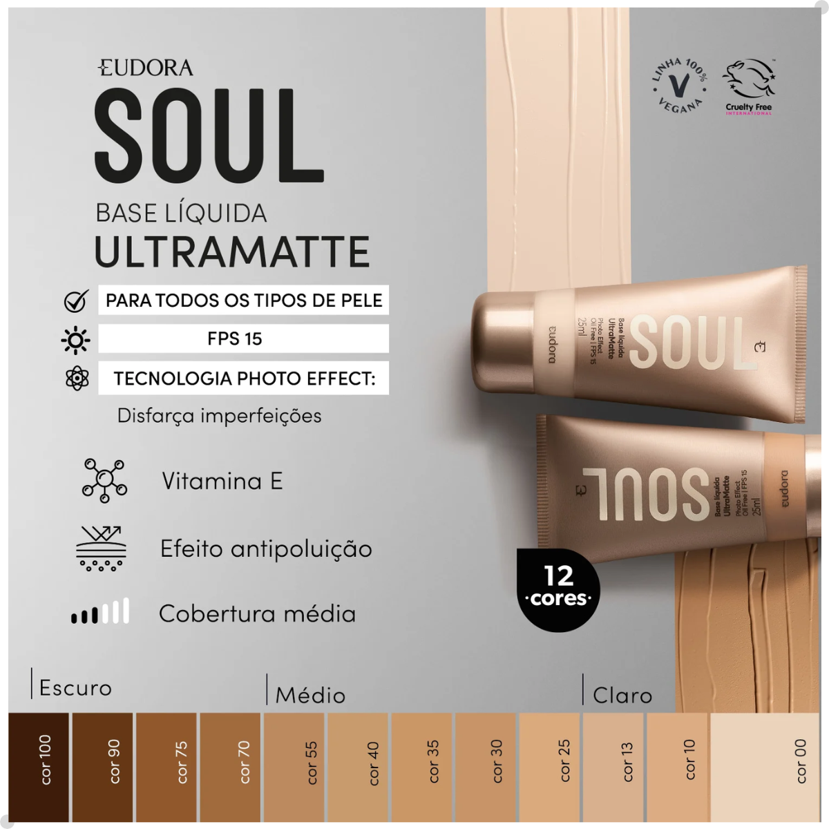 BASE LÍQUIDA SOUL ULTRA MATTE 25ML - ESCOLHA A COR