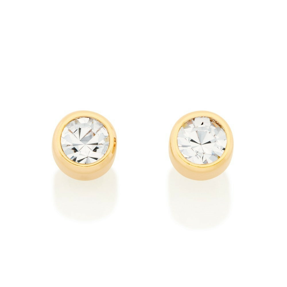 BRINCO SOLITÁRIO FOLHEADO A OURO COM CRISTAIS CÓD. 52018506