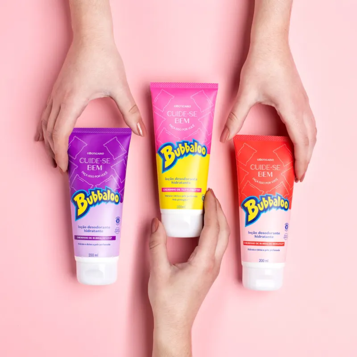 O COMBO BUBBALOOTRAZ A NOSTALGIA DE BUBBALOO COM TODO O AUTOCUIDADO DE CUIDE-SE BEM. COM UM ITEM DE CORPO E BANHO E UM GLOSS LABIAL, O CHEIRINHO DEBUBBALOO TUTTI FRUTTIVAI SE TORNAR SEU QUERIDINHO:_x000D_
