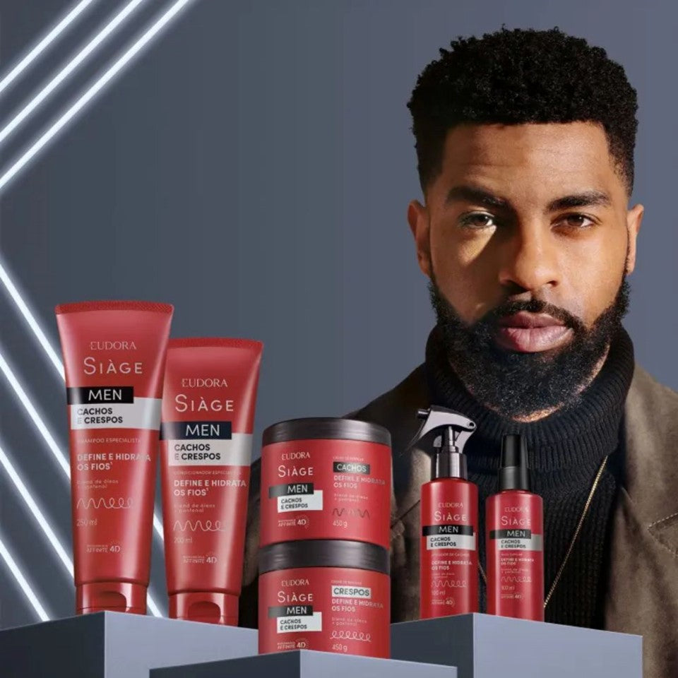 O Shampoo Siàge Men Cachos e Crespos é um shampoo masculino desenvolvido com a Biotecnologia Affinité 4D e Blend de Óleos especialmente para quem busca hidratação profunda, definição duradoura e controle do frizz. Limpa sem ressecar, define a curvatura 2A a 4C, proporciona balanço natural e deixa os fios macios e com aspecto saudável. Livre de parabenos, petrolatos, sal e sulfatos.