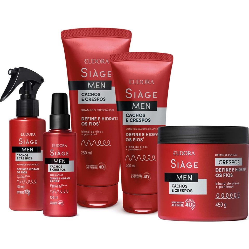 O Combo Siàge Men Cachos e Crespos é o tratamento completo para homens que desejam cachos definidos, hidratados e sem frizz. Composto por Shampoo, Condicionador, Creme para Pentear, Óleo Capilar e Ativador de Cachos, o combo oferece uma rotina completa para cabelos do tipo 2A a 4C. As fórmulas com Biotecnologia Affinité 4D, Pantenol e Blend de Óleos poderosos (Baobá, Moringa, Figo da Índia, Tamanu, Manteiga de Karité e Manteiga de Coco) garantem hidratação profunda, definição duradoura, brilho, maciez e controle do frizz.*