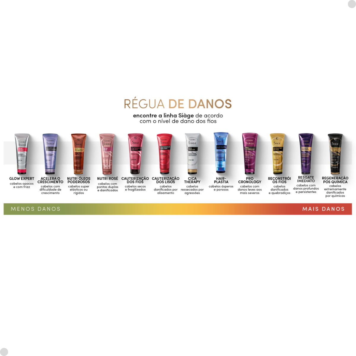 O Combo Siàge Pro Cronology Cronograma Capilar Acelerado Completo traz todos os itens necessários para cuidar dos seus fios: Shampoo, Condicionador, Kit Cronograma Capilar Acelerado e Leave In. Desenvolvido com Ácido Poliglutâmico, um dos mais potentes hidratantes, é ideal para recuperar até os danos mais severos em até 2 semanas.