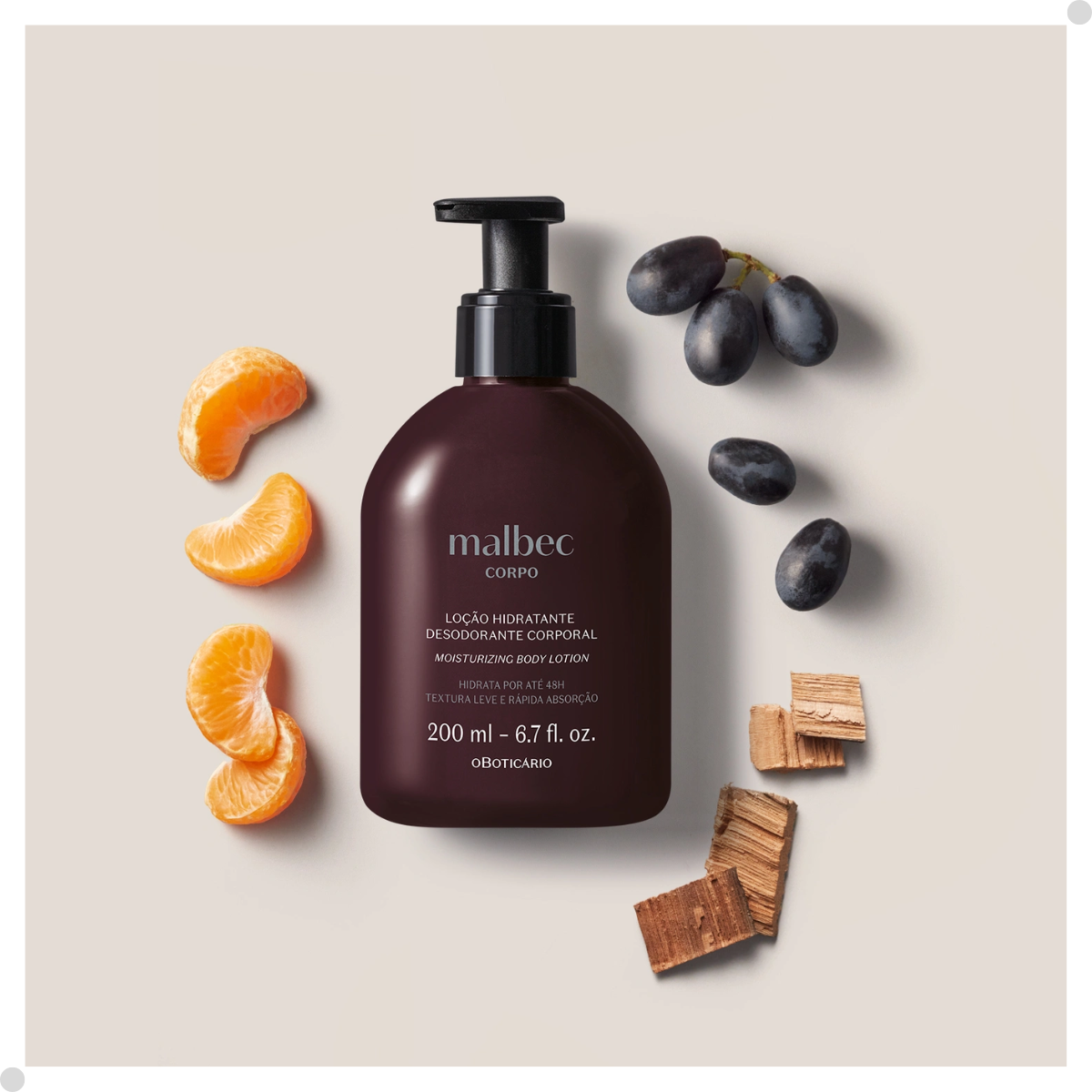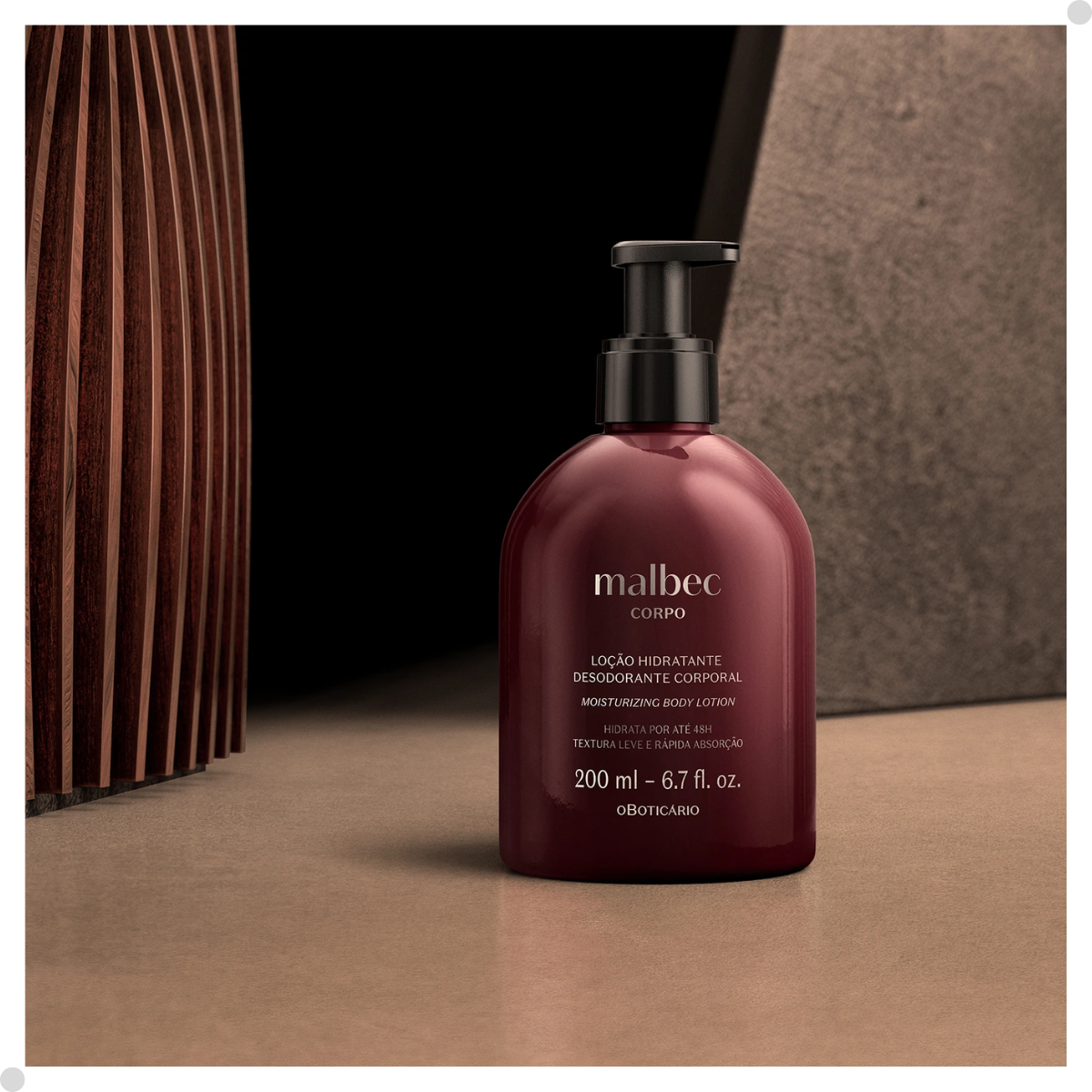 A Loção Hidratante Desodorante Corporal Malbec entrega perfumação prolongada para a sua rotina de cuidado diário através de uma hidratação potente para a pele.
