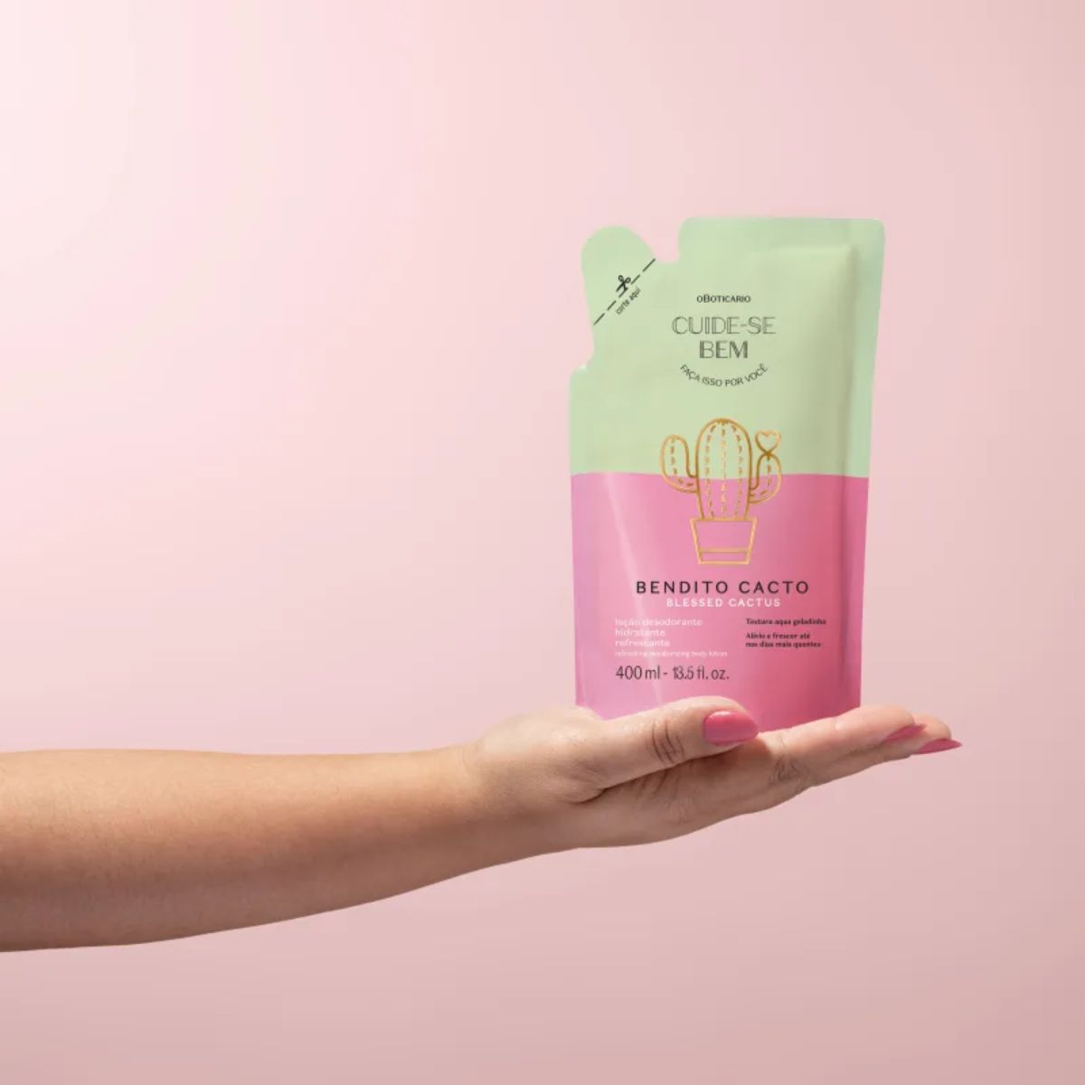 O Refil Loção Desodorante Hidratante Refrescante Corporal Cuide-se Bem Bendito Cacto 400ml é perfeito para repor a sua loção favorita e garantir hidratação diária com perfumação e frescor por muito mais tempo!