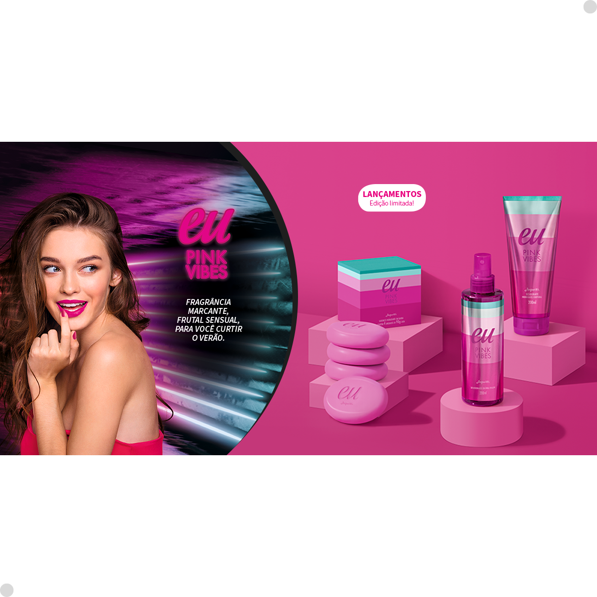 Prolongue a perfumação em sua pele, com a linha completa de Eu Pink Vibes