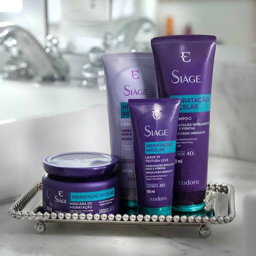 Com o Shampoo Siàge Hidratação Micelar , você vai ter os cabelos que sempre sonhou: hidratados, brilhantes e cheios de balanço por mais tempo. Com uma limpeza suave , ele promove uma maciez incrível e o movimento que ele proporciona é perceptível desde a primeira aplicação, mudando completamente o visual dos seus cabelos. Com Ativos Biomiméticos e Algas Marinhas que dão um aspecto saudável, enquanto protege das agressões diárias, como sol, vento e chuva. A linha também possui um sistema micelar inteligente que detecta o nível de ressecamento dos fios e os restaura na medida certa, sem deixá-los pesados. Dermatologicamente testado Nenhum produto Eudora é testado em animais, ou seja, este item possui selo Cruelty Free.